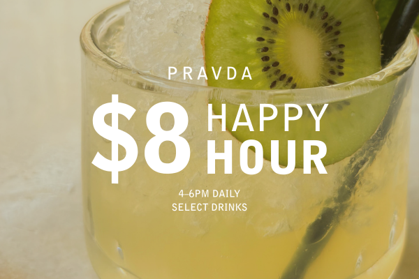 Ease into the evening with our $8 Happy Hour, the perfect excuse to unwind and linger a little longer.
